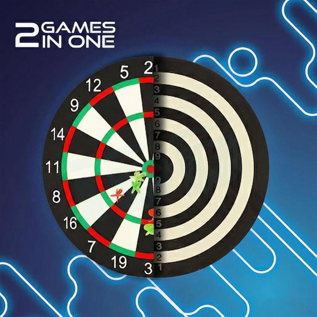 🔄 Double-Sided Play: Reversible design offers a standard 1-20 tournament layout on the front and a Target Game on the back.