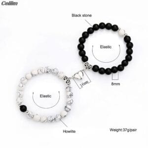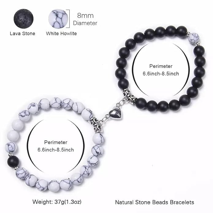 2pcs Romantic Heart Matching Lovers Natural Stone Beads Bracelet Magnet Couple Bracelets for Woman Men Jewelry