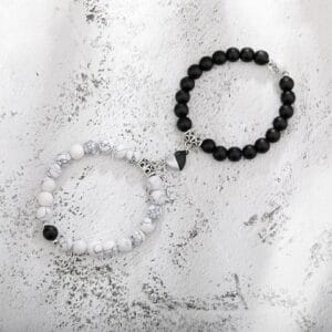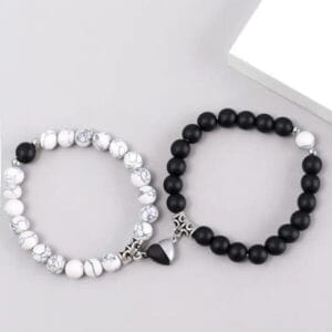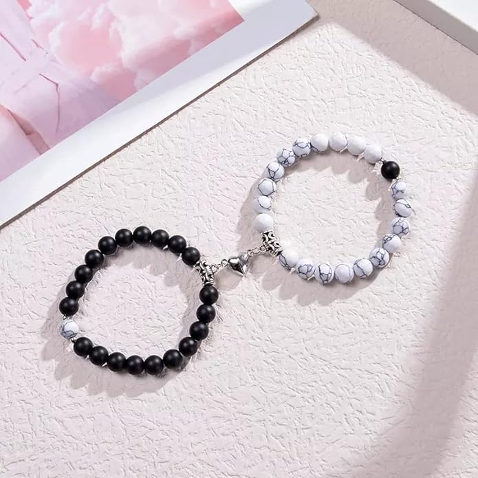 Unique Designed 2 pcs of combo Black and White handmade beads Couple and friend Bracelet set with Magnetic Charms for Unisex.