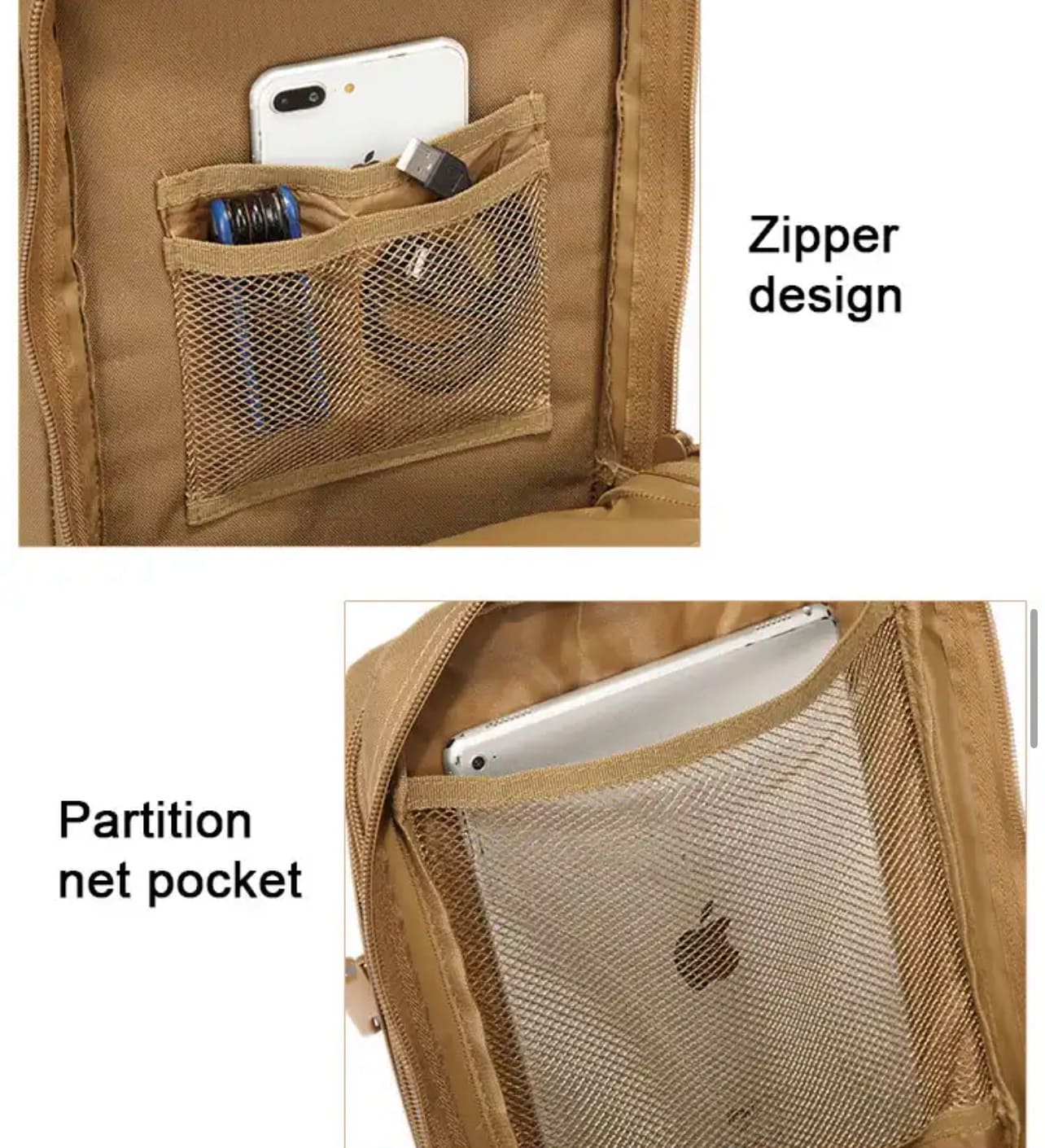 【50L Military Backpack】Size approx 8.7" x 24" x 18.5", 50L capacity is a perfect size, 3 main compartments + 2 accessories pocket + back compartments, main compartments with laptop compartment, also can be as hydration compartment!