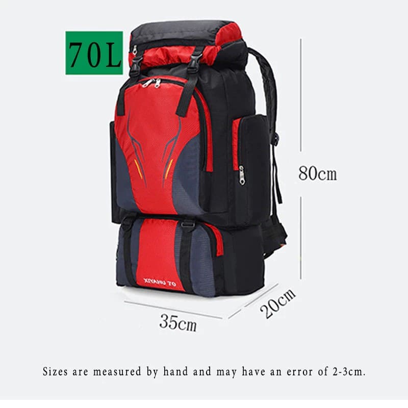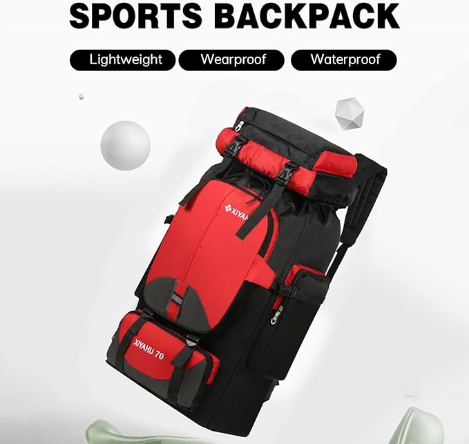 Large 70L Capacity: Ample space to carry all your essentials for hiking, camping, or climbing.