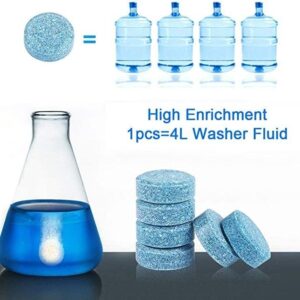 Features: The volume is small, the diameter is only 0.6inch / 1.5cm, and it is easy to store. Product Efficacy: Effectively remove stains, oil film, shellac, dust, dirt on the glass surface, clean without residue, and have anti-aging function for the wiper strip, maintaining the flexibility of the rubber strip and prolonging the service life. It can clean and lubricate the glass, greatly reducing the friction of the wiper blade and glass, and comprehensive protection to meet your long-term needs. It also gives you a clear vision and provides a safer and more comfortable driving experience. Wide range of uses: This product is used for daily cleaning of automobile windshields, windshields, rear view mirrors and interior mirrors, as well as various glass products. Instructions for use: 1. Open the front cover of the car; 2. Open the lid of the wiper spray can; 3. Put a piece of effervescent tablet in glass water; 4. Pour in water for 10-20 minutes and then spray water for use.