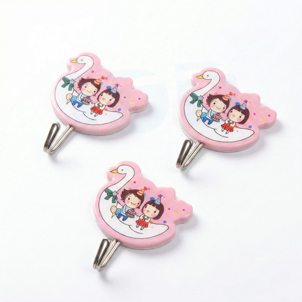 Durable Materials & Safe Design Built to withstand daily wear and tear, the body of the hook is crafted from high-impact ABS Plastic. Unlike brittle plastics that crack over time, ABS is known for its resilience and shock absorption. The pink swan design is printed with fade-resistant pigments, ensuring the graphic remains vibrant even after prolonged exposure to sunlight near a window. Crucially, the Stainless Steel metal hook is resistant to rust and oxidation. This means you can use these hooks in steamy bathrooms or near kitchen sinks without worrying about unsightly rust stains transferring onto your white towels or clothes. The metal hook also features smooth, rounded edges to ensure it never snags or tears delicate fabrics like silk scarves or wool sweaters.