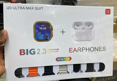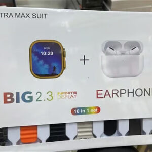 This modern smartwatch offers a high-resolution 320*240 display, MP3 playback, touch screen, and app control. It monitors sleep, heart rate, and exercise while keeping you connected with call and message notifications. With music control and seven stylish straps, it’s perfect for fitness, health, and everyday use. i20 Ultra MAX SmartWatch + Aiirpods Pro