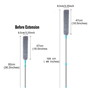 2. Adjustable Length: The extendable pole is your secret weapon. Customize its length to suit your cleaning needs. The short handle is perfect for floor and under-bed cleaning, while the long handle conquers dust and cobwebs in high places, from ceilings to air conditioning units and windows.