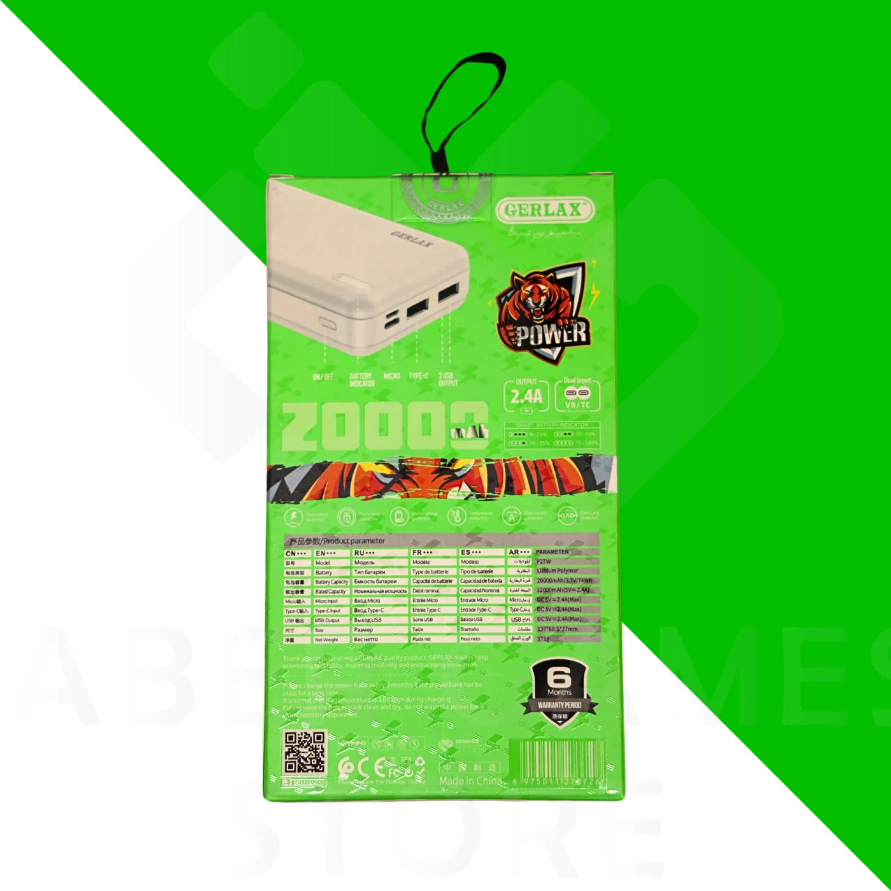 Gerlax 20000mAh Portable Power Bank – Dual Input, Dual Output, High Capacity & Fast Charging