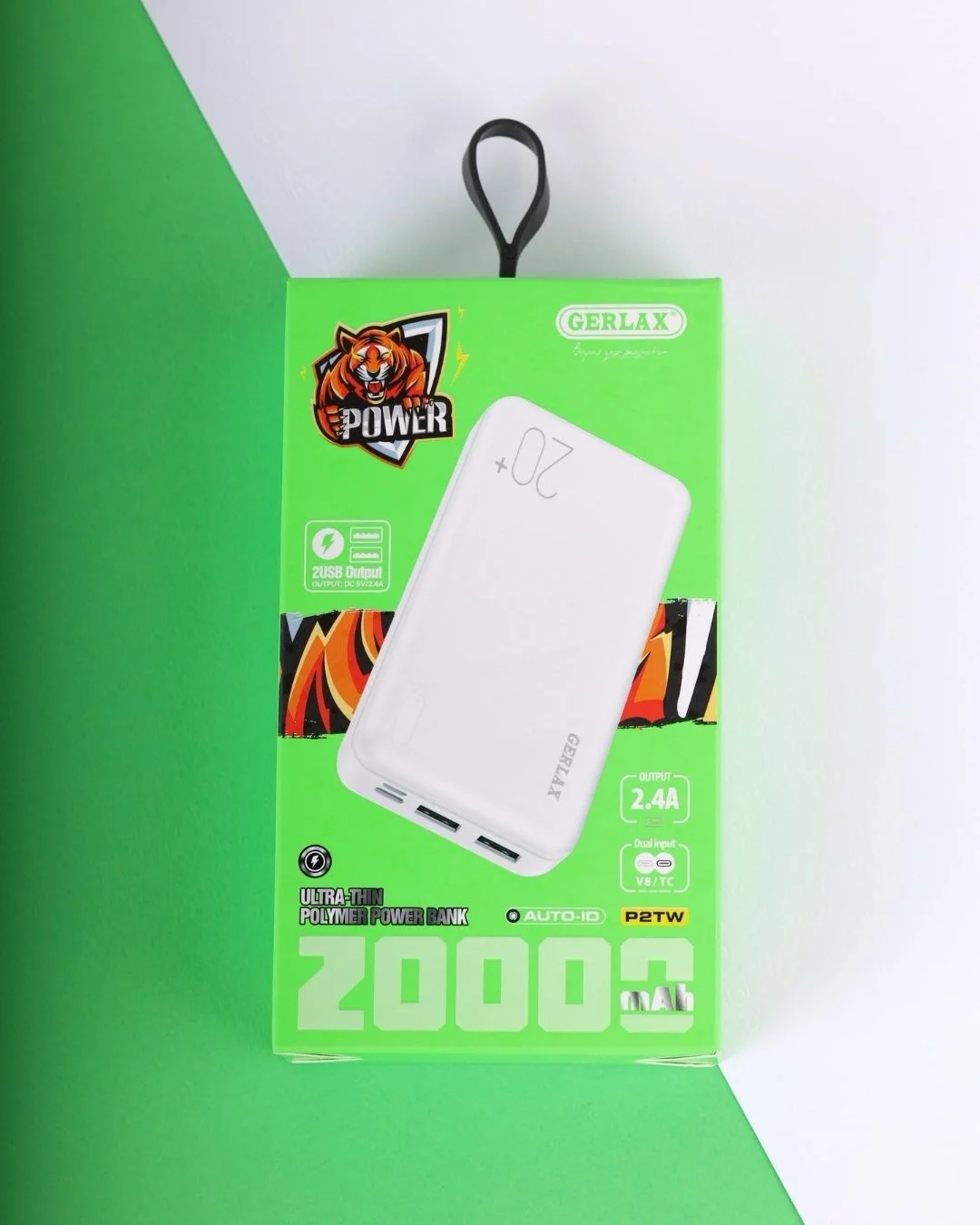 Stay charged with the Gerlax 20000mAh Portable Power Bank, the ideal solution for all your power needs.