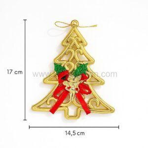 Add a touch of timeless elegance to your festive décor with this beautifully crafted golden Christmas tree ornament. Designed with intricate openwork filigree, a bright red satin bow, and a charming golden angel centerpiece surrounded by green holly leaves, it captures the classic spirit of Christmas in every detail. Perfect for trees, doors, or gift wrapping accents, this piece shines under any holiday light and adds warmth to your celebrations.
