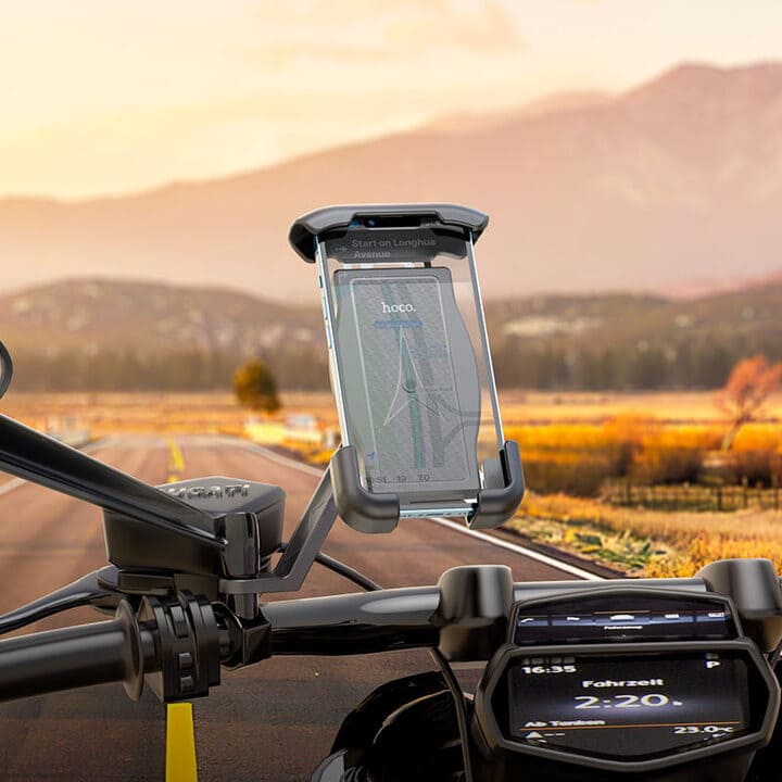 The Hoco CA119 Follow is a reliable motorcycle phone holder designed for rearview mirrors. With its press-type clamping and 360° rotation, it ensures a secure and stable grip for 4.5–7 inch smartphones. Built with durable ABS, PC, silicone, and aluminum alloy, this holder provides excellent stability even on rough roads, making it the perfect companion for safe and convenient navigation while riding.