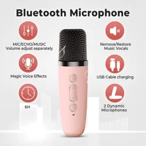 The K12 is designed for ultimate portability, with a lightweight structure and durable build, perfect for both indoor and outdoor use. Its rechargeable 2000mAh battery offers up to 8 hours of continuous playtime, ensuring non-stop fun. Whether you’re hosting a party, practicing karaoke, or enjoying family karaoke nights, this speaker is your go-to entertainment companion.
