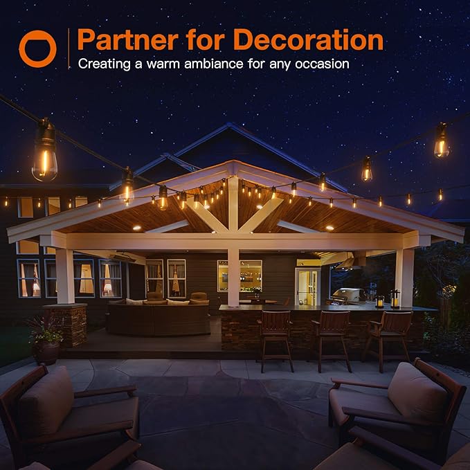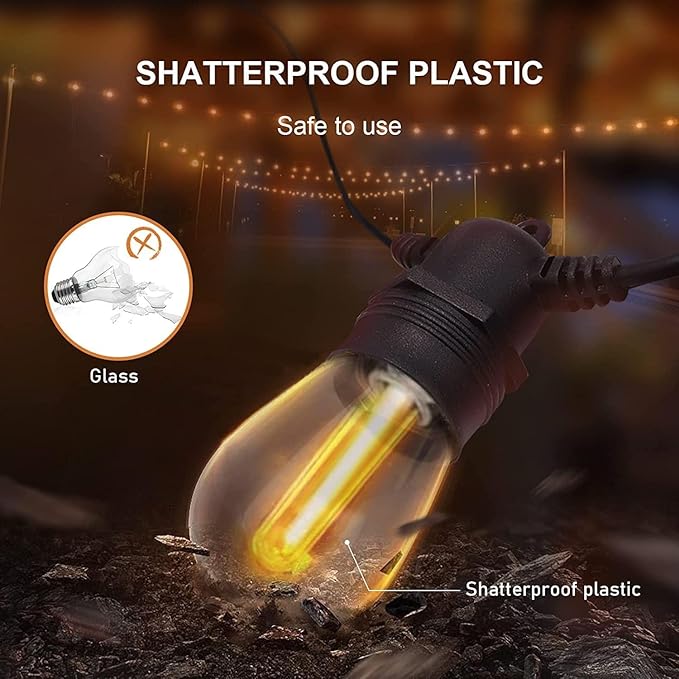 Enhance your outdoor spaces with the elegant and durable Lighting Legends Outdoor String Lights. Designed to create a warm and inviting atmosphere, these lights feature 10 shatterproof LED filament bulbs that emit a cozy 2700K warm white glow, perfect for patios, gardens, weddings, and any outdoor occasion.