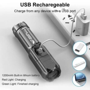 The flashlight has a zoom feature that allows you to focus the light beam on