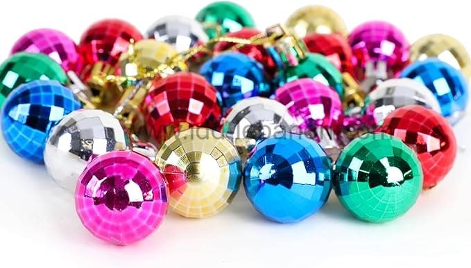 Each pack includes a mix of vibrant holiday shades — red, gold, green, blue, silver, and pink — perfect for decorating Christmas trees, wreaths, garlands, or party spaces.