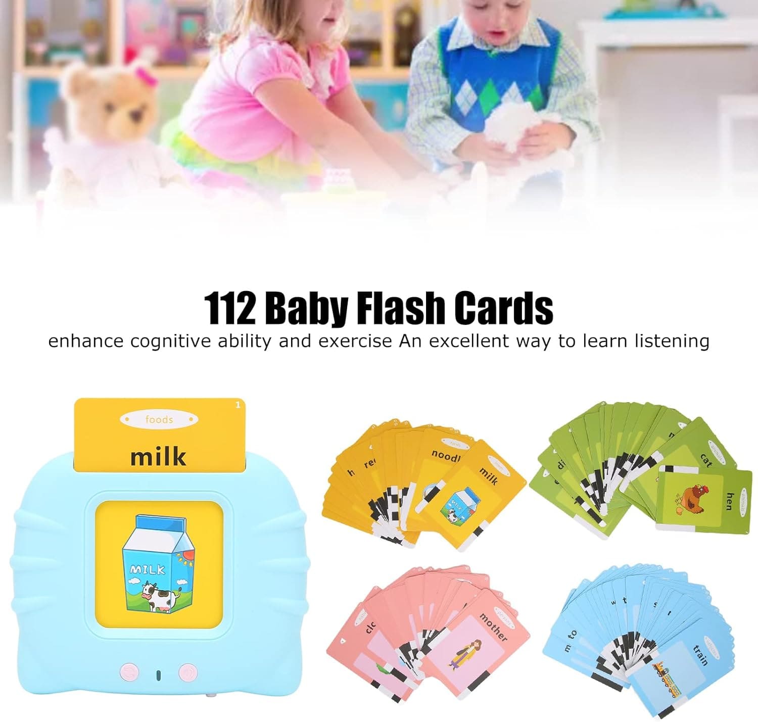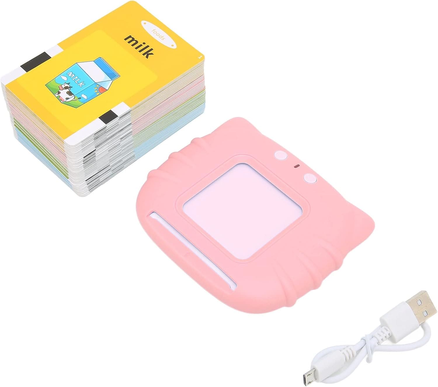 Encourage early learning and creativity with this fun and educational talking flash card set!