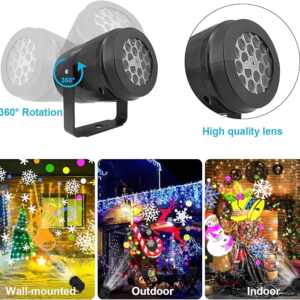 16 Spectacular Holiday-Themed Patterns: Instantly create a stunning visual experience with our vibrant projections, featuring snowflakes, snowmen, Santa Claus, reindeer, Christmas trees, and more. Change up the mood effortlessly to match any festive occasion!