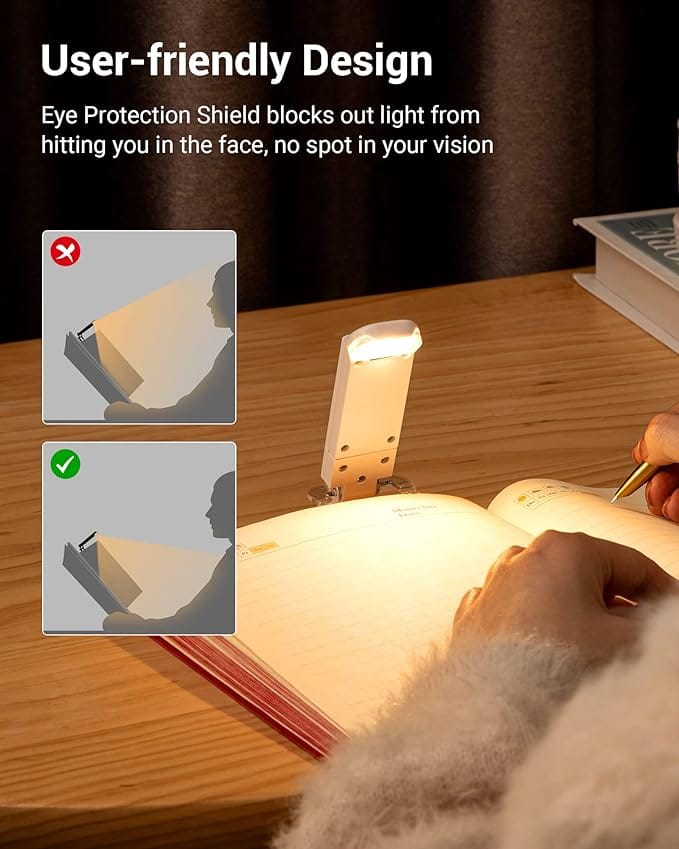 【Compact & Lightweight】1.3 ounce, lightweight and small, ideal for clipping on a book when nighttime reading; can be completely folded flat and slim, portable for reading on airplane, train, or backseat of car when travelling.